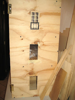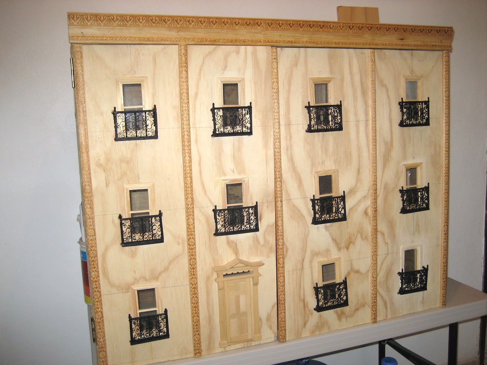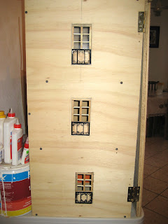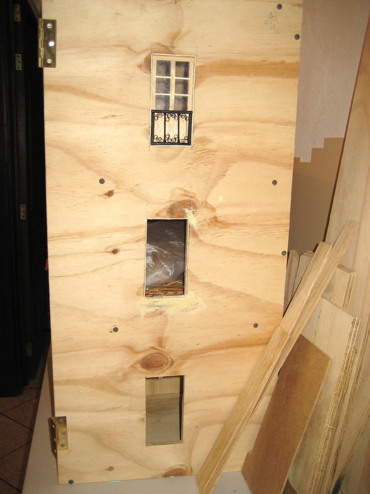 las ventanas de los costados son palitos de paleta y cerillas las voy a colocar a ambos lados de la casa para darle mas "luz" al interior. todavia falta lijar, barnizar y poner los marcos, pero ya tiene forma. la fachada la he pensado de color rojizo, mientras la puerta y ventanas las quiero barnizar con un color oscuro ademas les pondre muchas macetitas con flores.