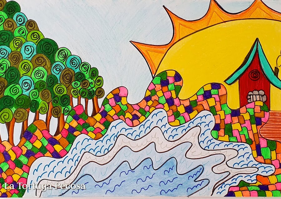 Qué bonitos días comienzan a hacer!!! pues en honor al buen tiempo, y la naturaleza, va esta pintura hecha con lapices y rotuladores.