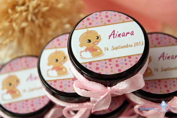 Para el diseño de la etiqueta elegimos un estampado infantil y una imagen de una bebé y dieron un aspecto muy dulce y muy cuqui, no os parece? ;)