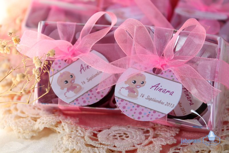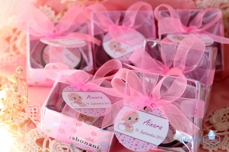 La mamá eligió el aroma de fresa, que es uno de los más suaves y que más gusta a la gente y como presentación le gustó un lacito de raso en color rosita a juego de la etiqueta.