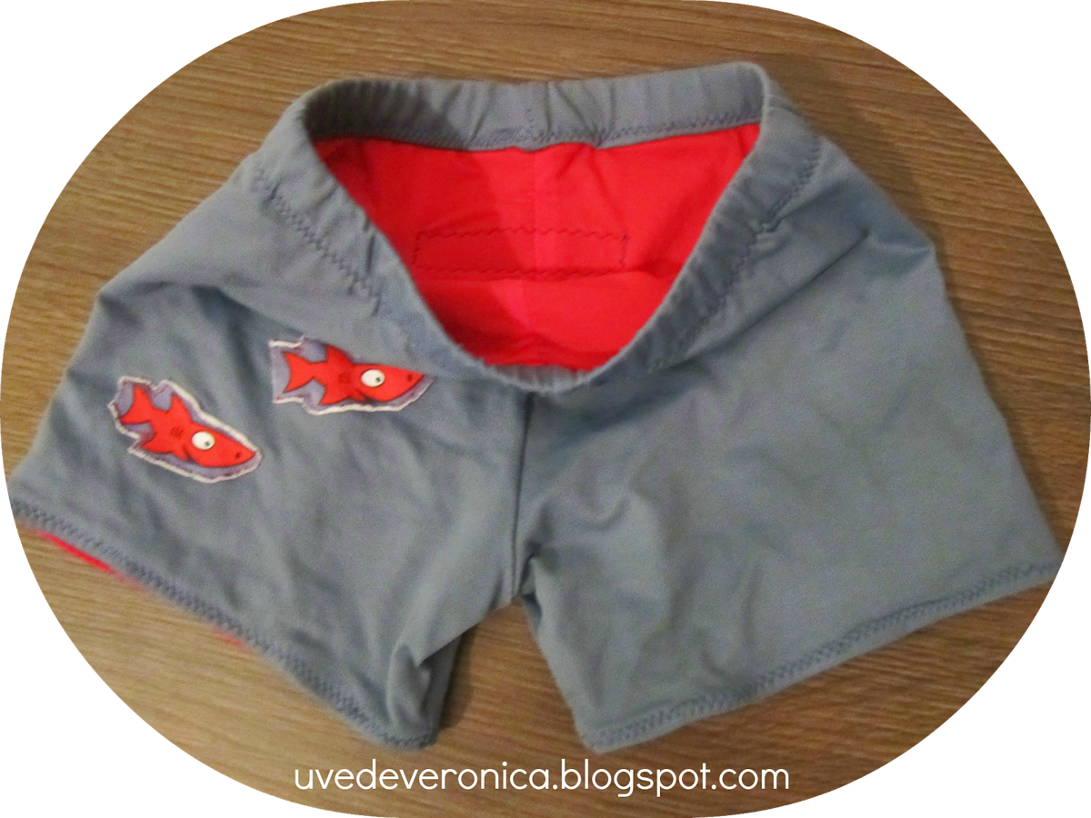 No se si recordáis la camiseta de tiburones, pues cogí prestados dos para ponerlos en el bañador... puntada normal alrededor y listo!