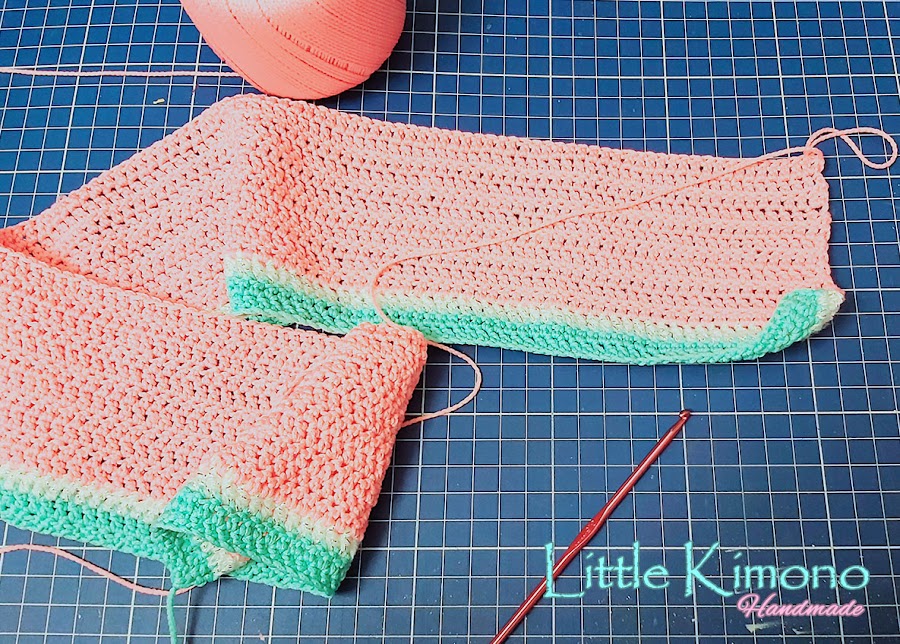 Por ejemplo para una talla 90 sale una cadeneta de unos 120 puntos más o menos, no os volváis locas con la medida exacta porque luego va sujeto con una tira a la espalda, es mejor que se quede un poco corto de largo que a que sobre ;)