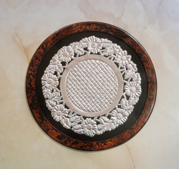 Bandeja con repujado de flores circulares
