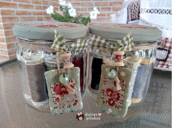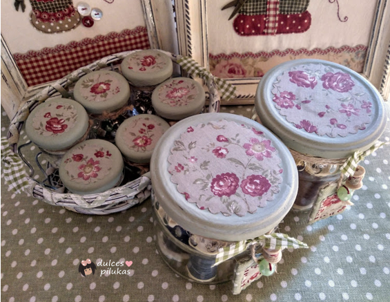 la telita, los botes, la pintura con la que los he pintado las tapas