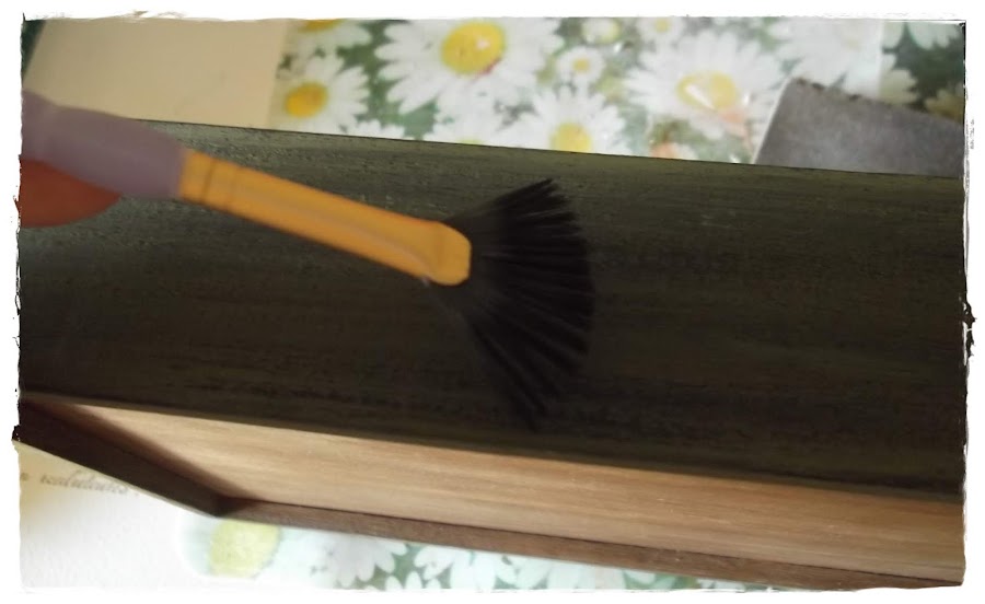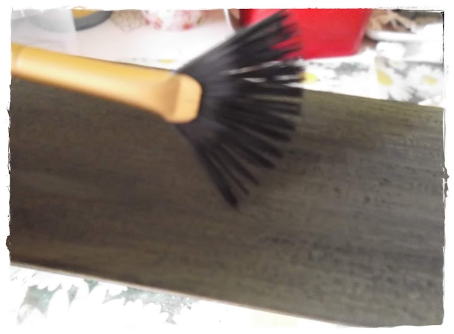 Lo impregno de pintura negra, lo descargo bien y dando pinceladas largas de un lado a otro consigo el efecto que veis.