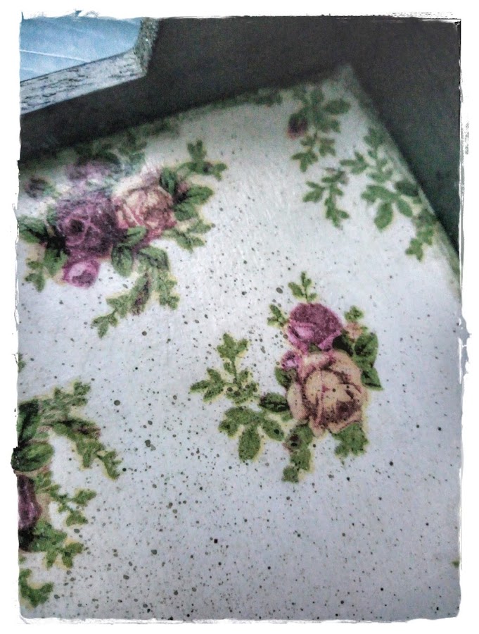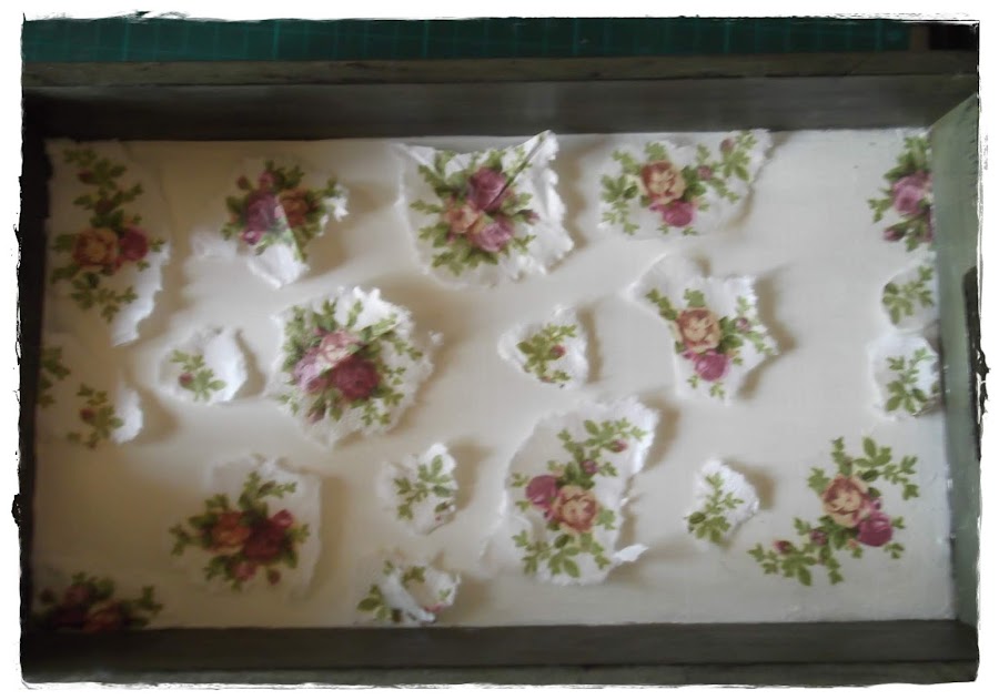 Una vez terminada esta fase voy ha empezar con el adorno de la base de la bandeja. Para eso voy a utilizar una servilleta con fondo en color claro, por eso pinto la superficie en un color lo más parecido posible y elijo el color marfil.