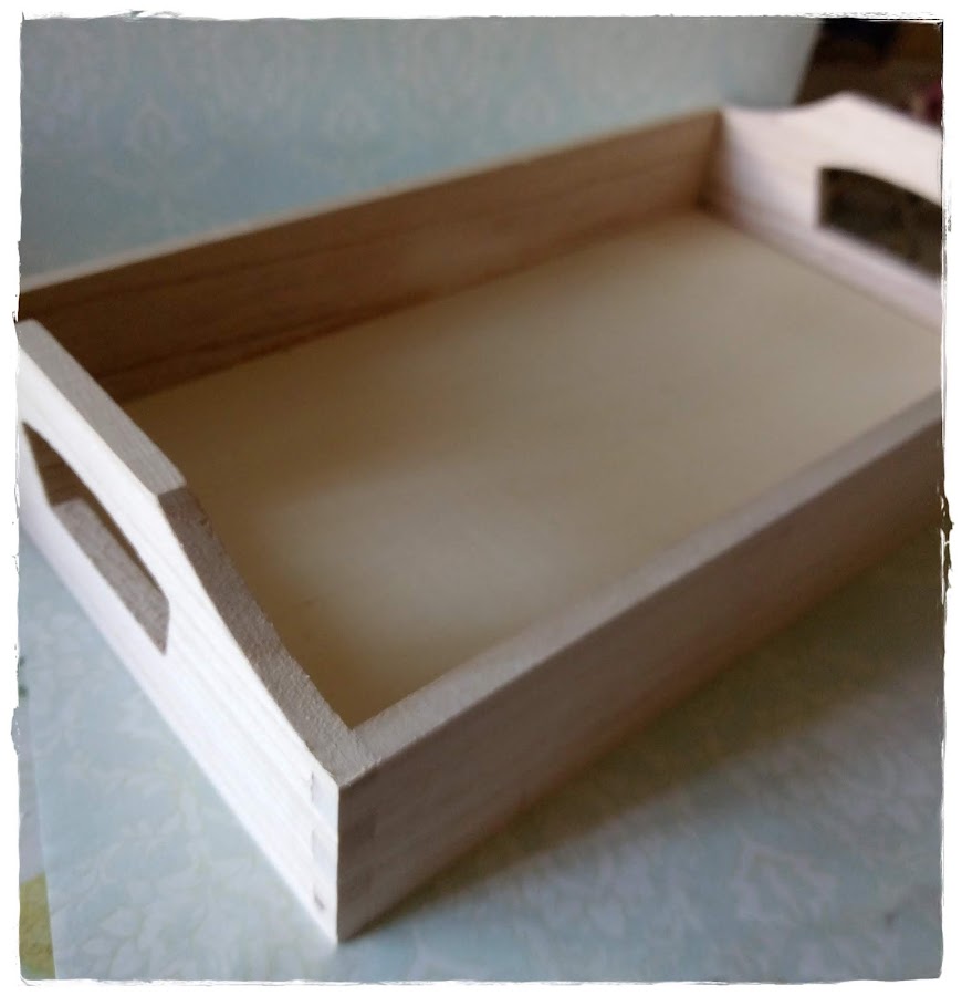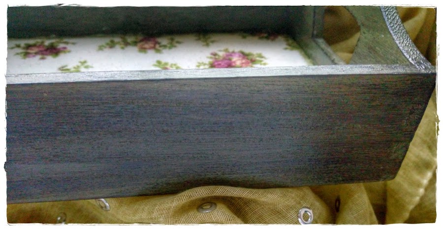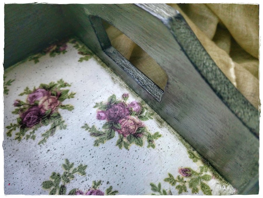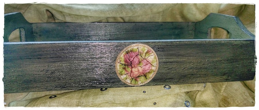 Se trata de una pequeña bandeja de madera que he decorado con varias técnicas.