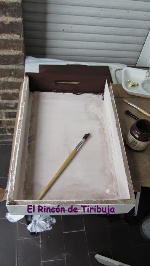 Una mano de imprimación blanca que cubre mucho y luego otras dos de gesso chocolate.