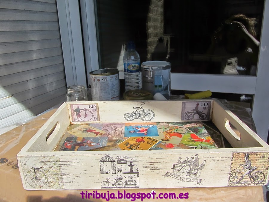 Os presento una bandeja con motivos de bicicletas, dedicada a mi amiga ciclista Nuria...