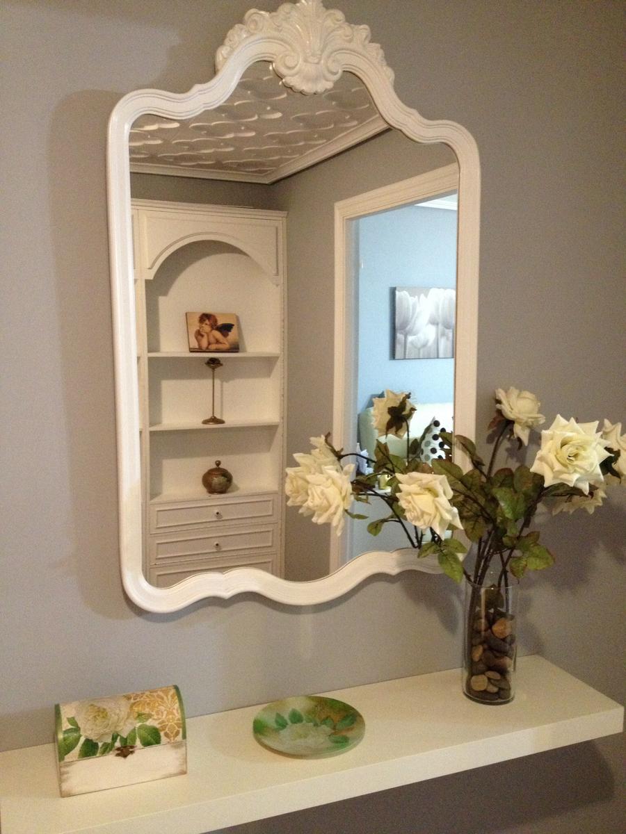 El espejo como os comenté, lo dejaron los dueños anteriores , y con una mano de laca blanca… Quedo genial!!. Animaros a hacerlo, es muy fácil.