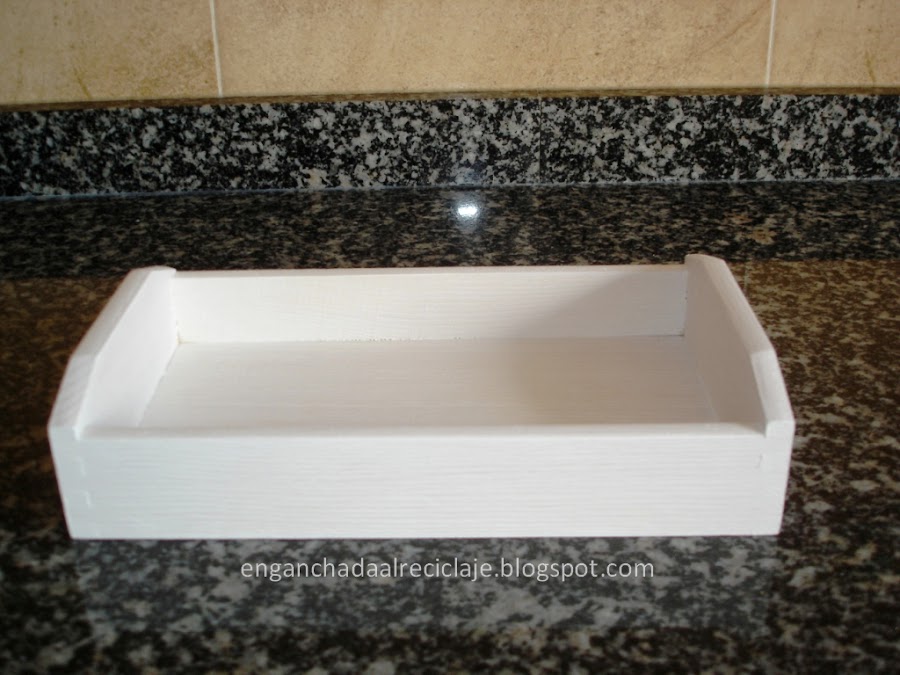 Compré en los chinos un bandeja de madera, la lijé bien y le di dos manos de imprimación.