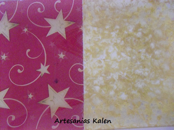 Aquí esta realizado con dos colores iguales (laca dorada y acrílico dorado) pero se pueden combinar dos colores distintos