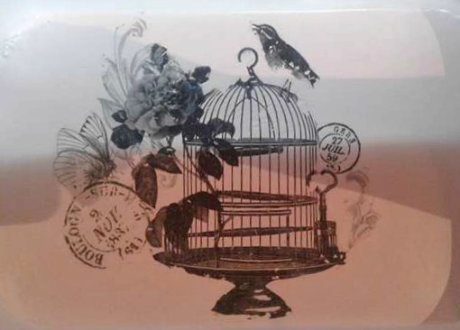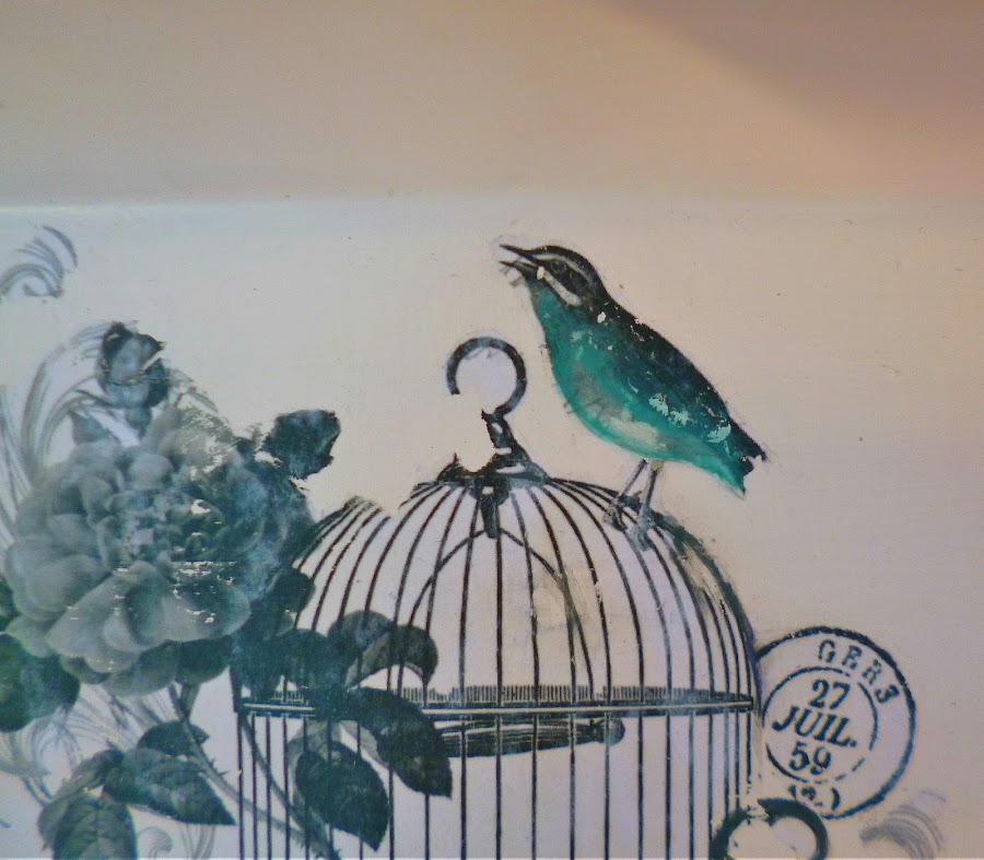 Esta vez la transferencia no me quedo tan linda y parte del pajarito y algunos barrotes de la jaula se me borraron.¡No se si es más fea la foto o la transferencia!