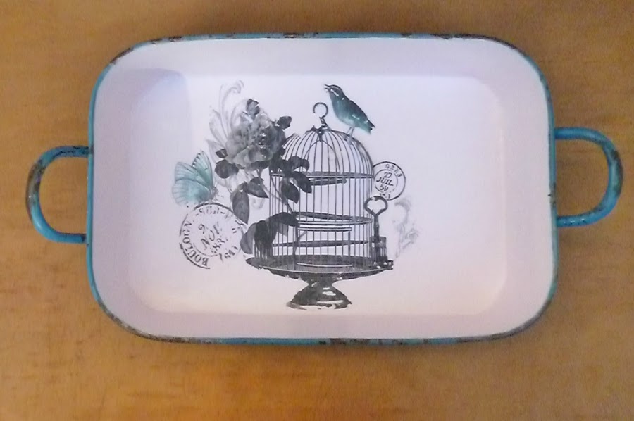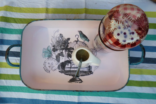Ahora la fuente que habrá sabido contener estofados hechos por alguna abuela sirve de bandeja,y yo estoy feliz de haberla traído de nuevo a la vida.