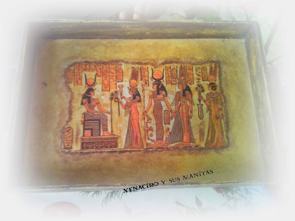 Bandeja realizada con caja de langostinos o gambas, decorada con la técnica de decoupage