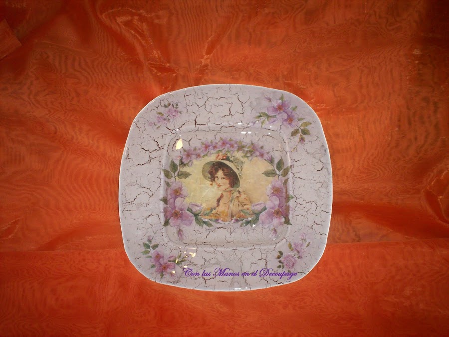 Por fin cuelgo algo nuevo, una bandeja un tanto romántica, la tenía pendiente de terminar desde hace tiempo, y ya está lista. Los motivos son en papel de arroz y el fondo, como podéis observar, está craquelado, la bandeja hace como hoyitos y hace un efecto muy bonito aunque en las fotos no se aprecien, espero que os guste.