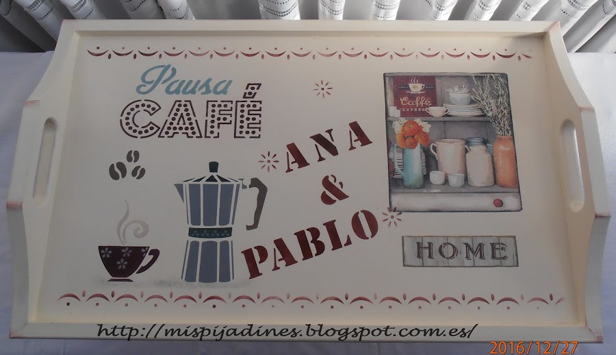 La plantilla de esta bandeja me la ha enviado Dekoshop, una tienda que llevan unas chicas majisimas y que conocí en Creativa Madrid, os recomiendo visitéis su tienda online pues tienen infinidad de plantillas y vinilos... gracias chicas os debía el comentario..