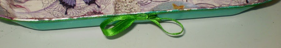 Pinto de acrílica verde la parte de fuera y pego un lazo de color verde para disimular donde termina la pintura verde y donde empieza la servilleta.