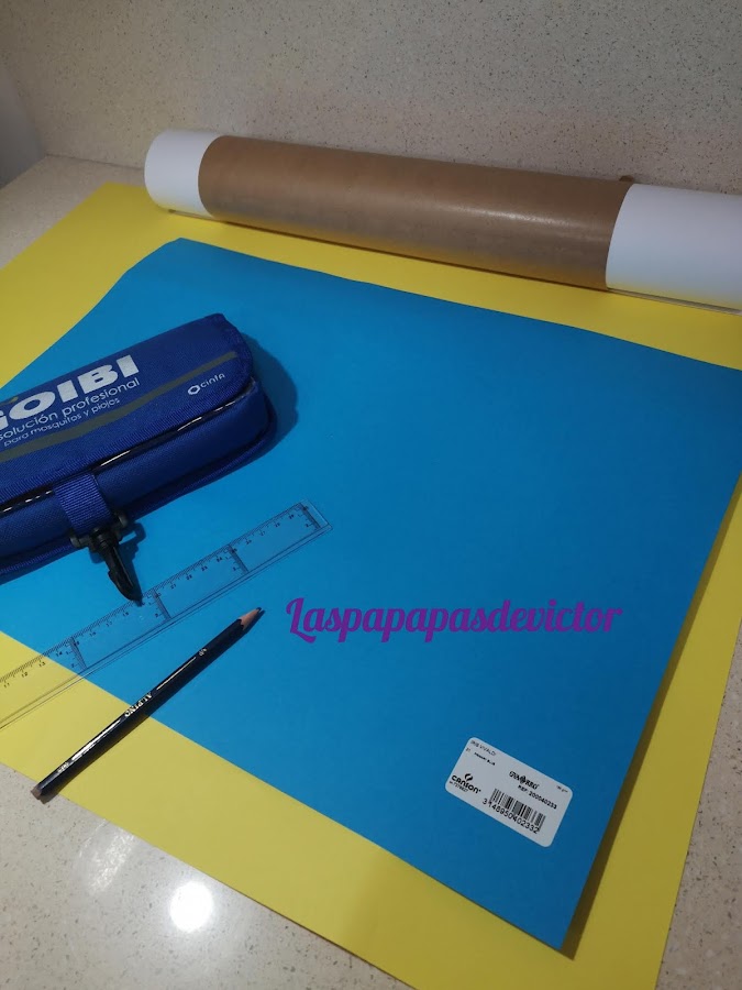 * cartulinas de color azul, amarillo y blanco