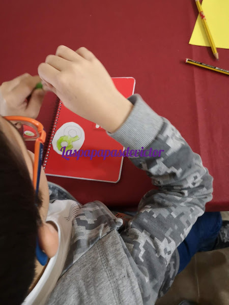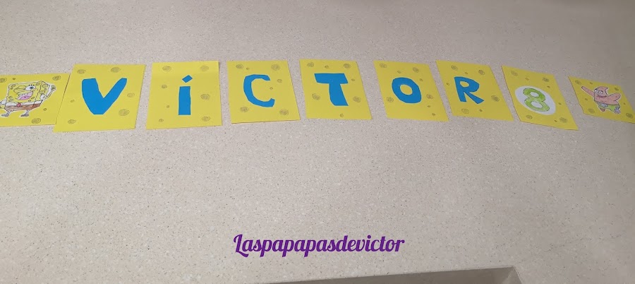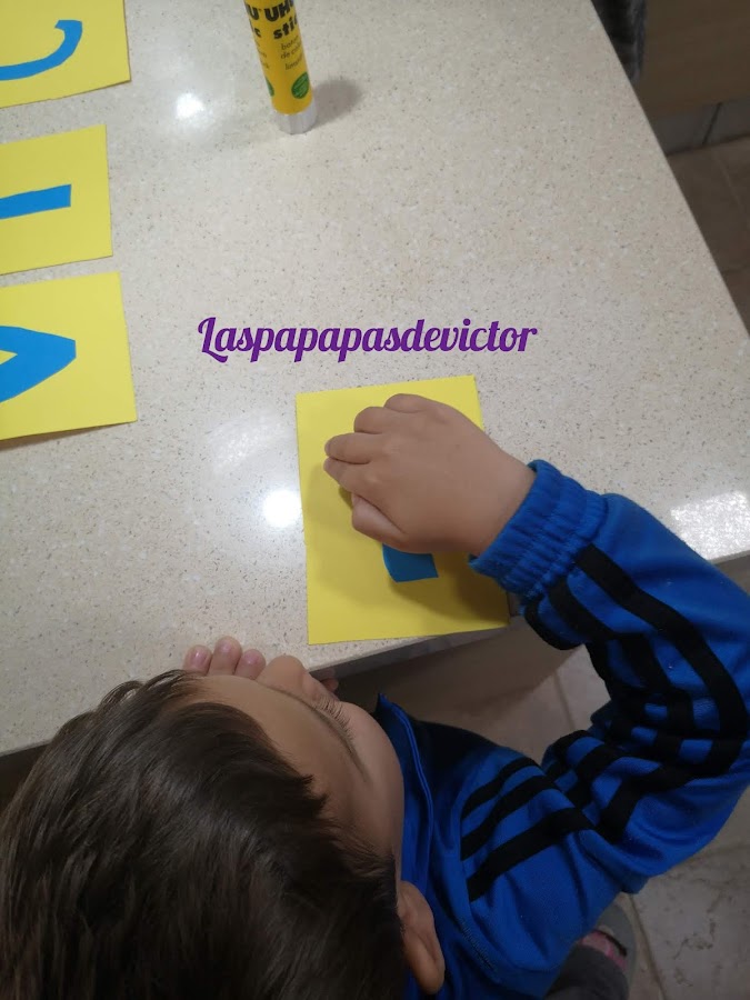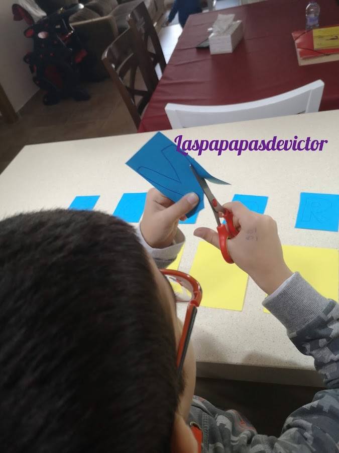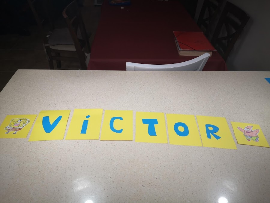 Mi pequeño también quiso ayudar y pegó algunas letras
