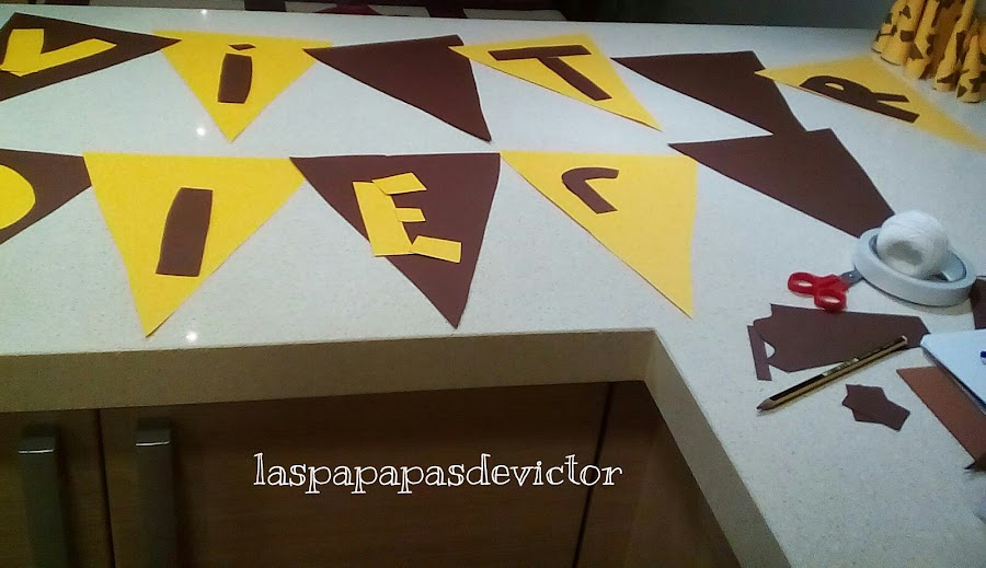 Les hice unos banderines con los colores de tipo jirafa