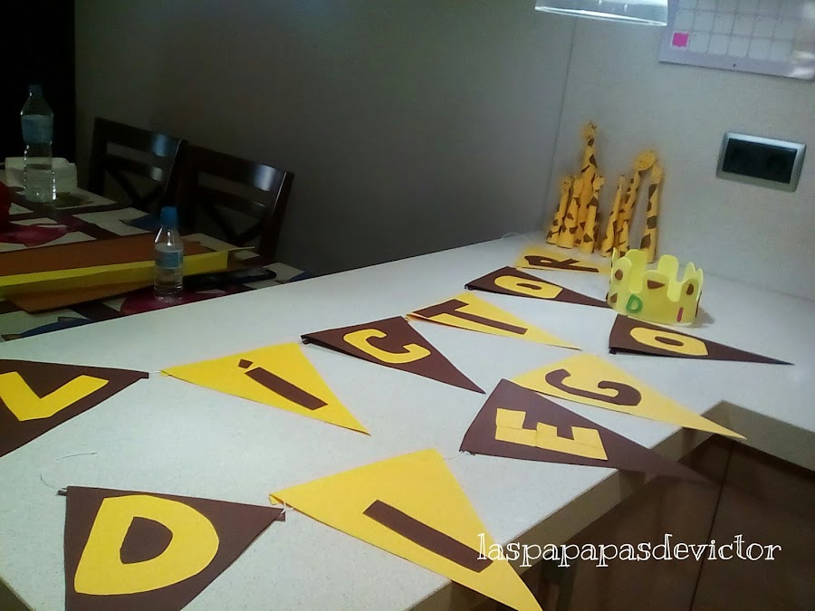 Y entre las jirafas de cartulina, la corona de jirafa, faltaba algo más ... Pues los banderines de jirafa !!