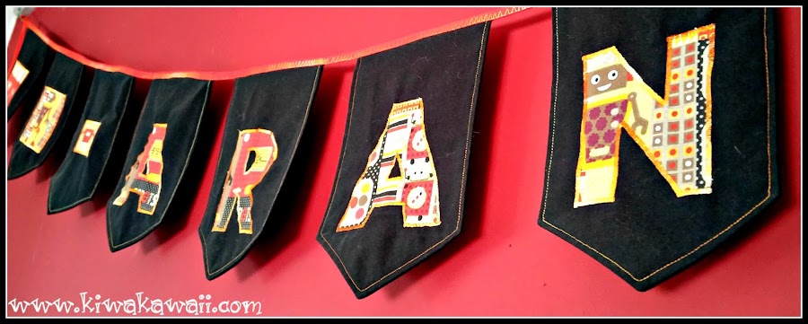 Hace no demasiado os enseñé la corona que hice para el último cumpleaños de mi peque (con tutorial y patrón). Aún no os había mostrado los banderines que le cosí para decorar su cuarto.