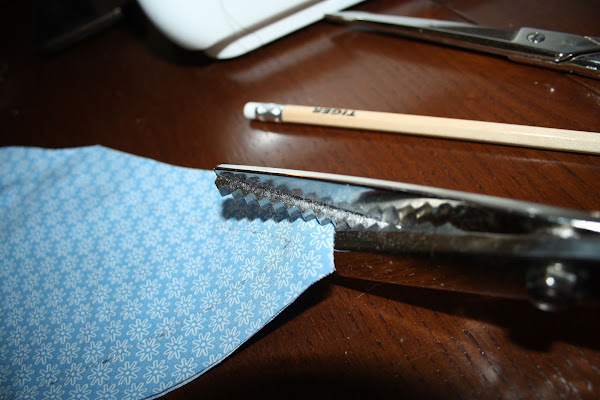 Cosemos por donde hemos marcado.A continuación cortamos con una tijera en zig-zag para que la tela no se deshilache.