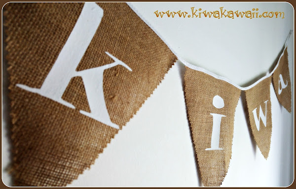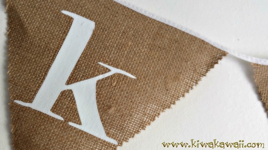 Las letras en vinilo textil, no sé por qué pero me encanta la mezcla del toque "moderno" del vinilo en algo tan rústico como la arpillera! Un biés finito para unirlo todo, y ya colgado queda claro que ése es mi rincón!! De paso os puedo decir que el vinilo textil se engancha sin problemas en el yute :)