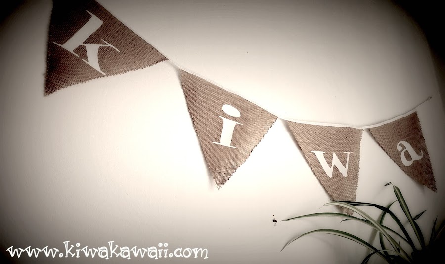 Los quería muy sencillos, son sólo triángulos de arpillera cortada con tijeras de bastillar para que no se deshaga; que la compré hace al menos dos años y nunca veía el momento de coserme mis banderines, ¡con lo que me gustan!