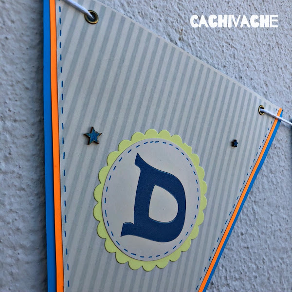 En este caso es para la comunión de Dani, con un papel decorado muy elegante, pero que con la mezcla del naranja y el azul le da ese punto divertido...