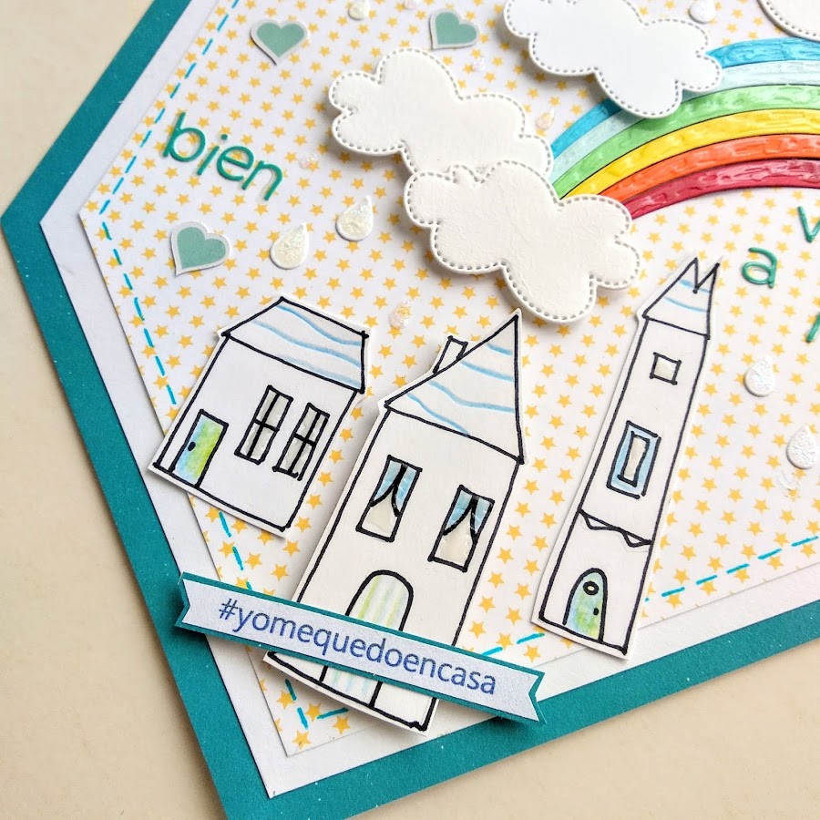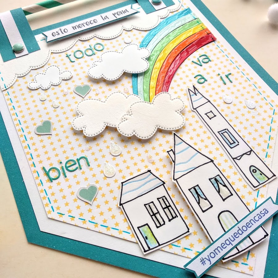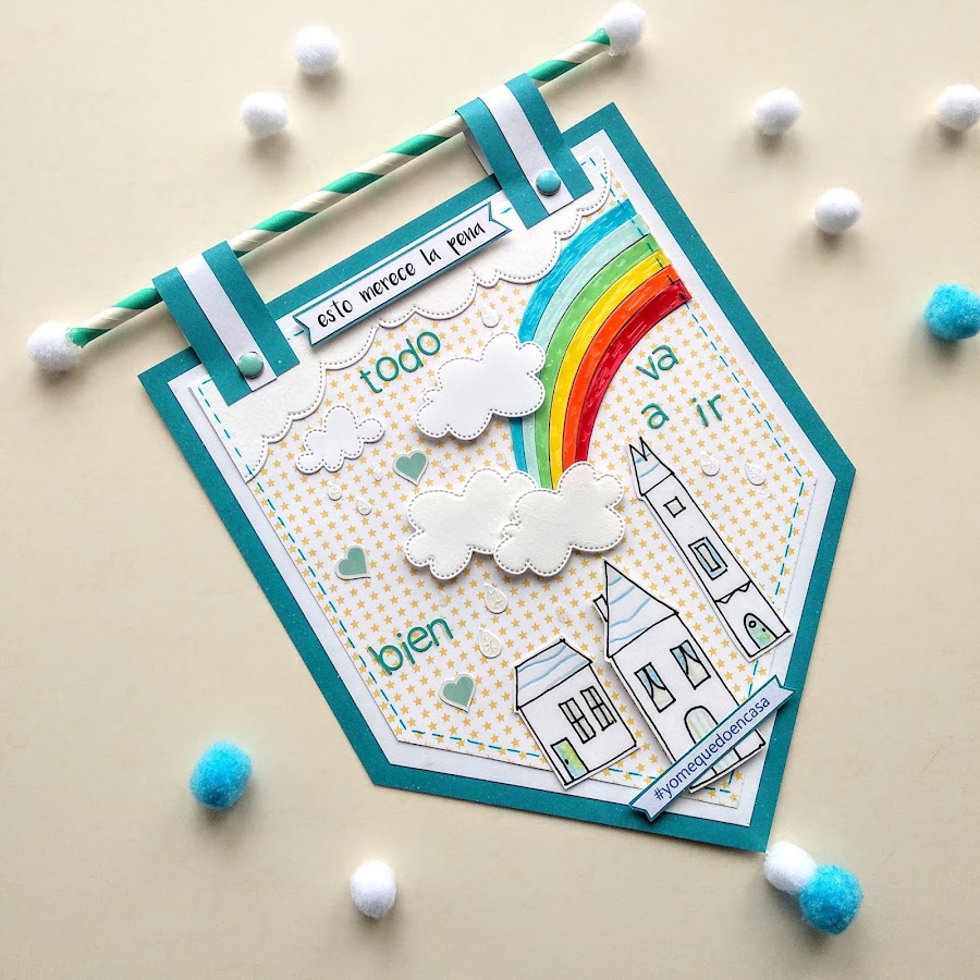 Para hacer mi #banderola he usado de fondo cartulinas lisas y un papel decorado de @anitaysumundo , troqueles de @laparejacreativa y, aunque las casas las he dibujado yo, las he copiado de la colección Abril Mágico diseñada por @marta.bynola para @scrapealo.es .