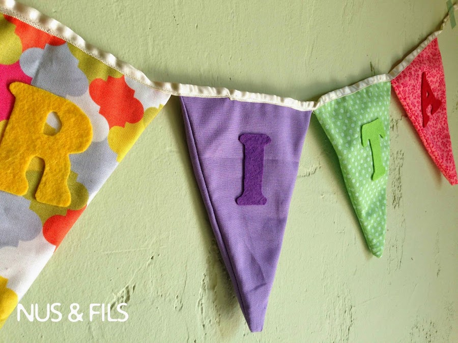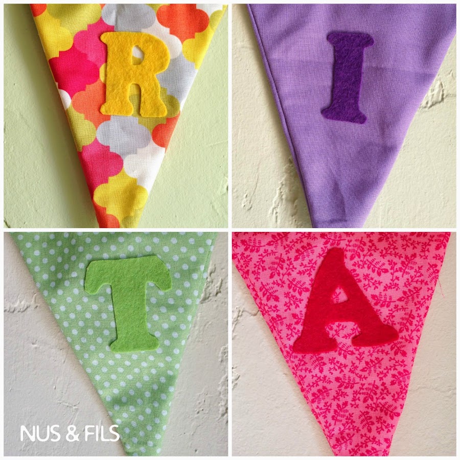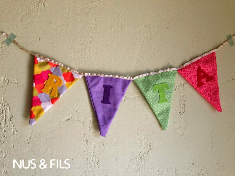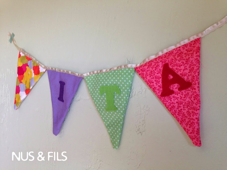 Aunque he estado con las pilas a medio gas no me he podido resistir a dar cuatro puntadas y ha coser estas sencillas banderolas para adornar la nueva habitación de la pequeña.