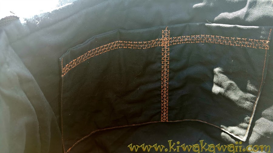 Bolsillos interiores con puntadas decorativas a contraste para localizarlos rápido.