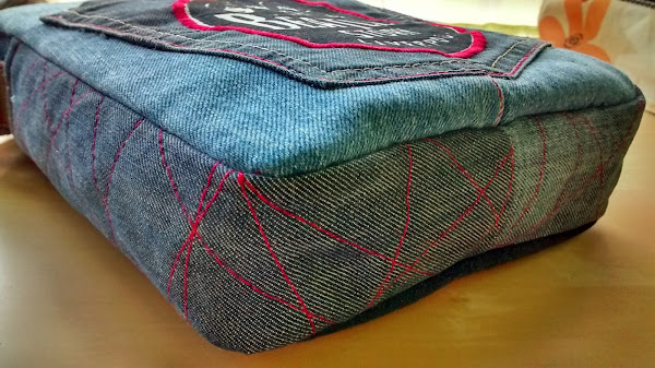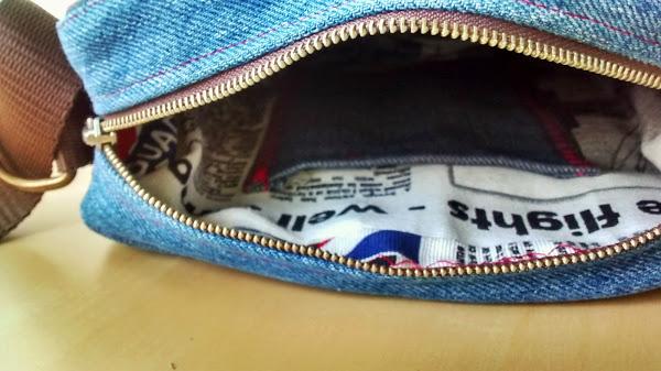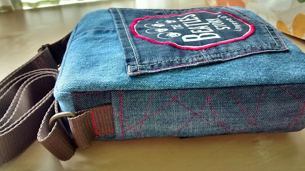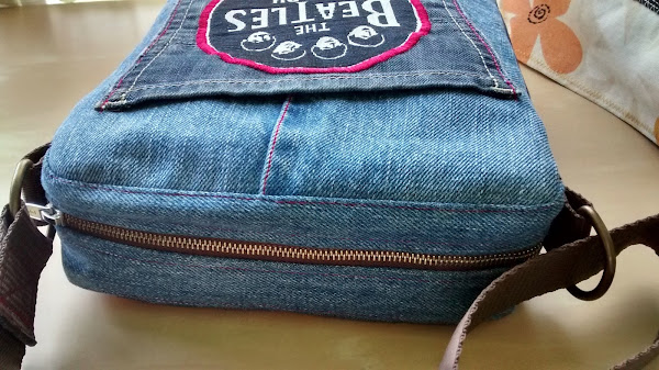 Por reciclar, hasta aproveché un bolsillo para hacer el frente de la bandolera y añadirle el motivo central que veis.