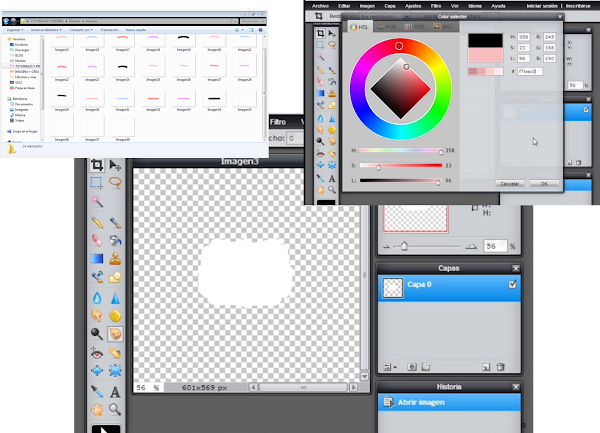 Bueno pues para evitarme la fatiga y a ti el disgusto de que no los encuentres en tus colores favoritos te voy a mostrar una manera fácil y rápida de darles color a los que agregue en blanco, con ayuda del programa On-line Pixlr, que si bien ya tienes conocimientos en diseño y sigues blogs sobre el tema sabrás que es una buena herramienta On-line para nosotras :D.