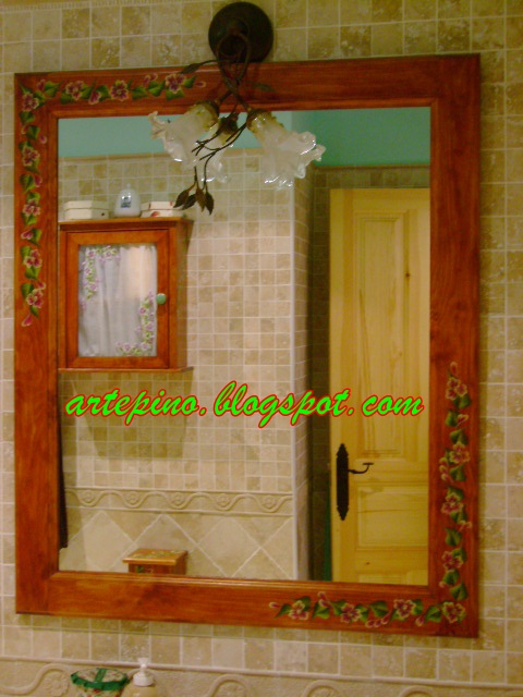 Hoy os enseño estas fotos de un escobillero - porta rollo y un toallero, unos bonitos accesorios de baño, el dibujo que tienen es el mismo que lleva la greca del baño.Más fotos en PINTADO arte pino