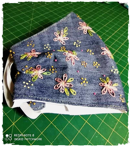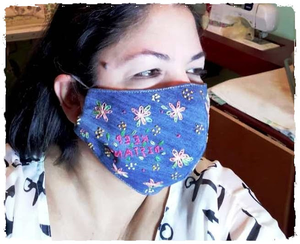 Como les comenté en el post anterior, está hecho con jean reciclado. Es una tela delgada, porque es jean de damas, así que no se hace incómodo por el calor. La verdad no puedo usar barbijos que estén pegados a mi nariz. Siento que me ahogo. Prefiero tener un espacio para poder respirar mejor.