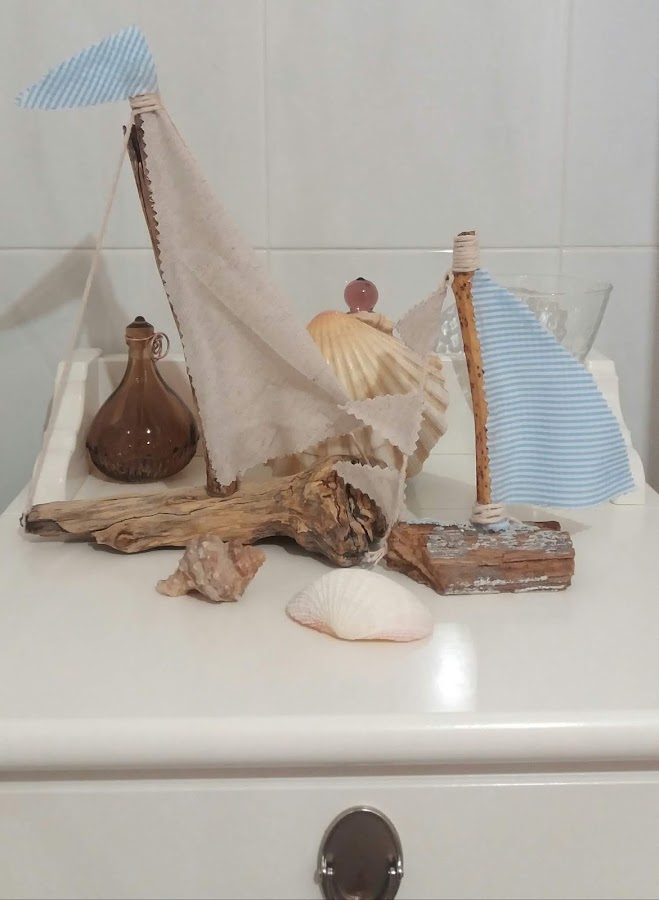 Ya paso a mostraros los dos barquitos que he hecho, y que ya decoran una parte del aseo de la planta baja.