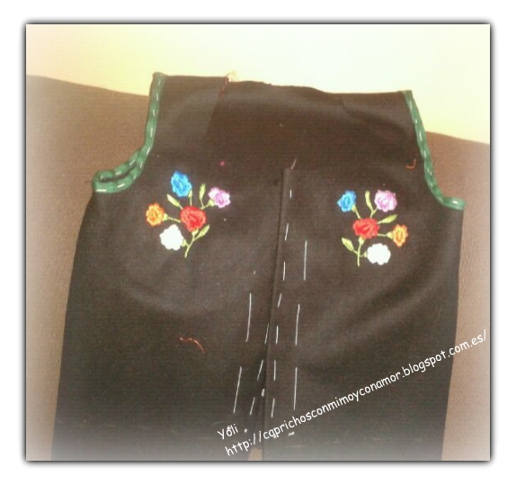 Este chaleco le bordo mi ama las flores de la pechera es para Jimena una peque que lo va a lucir guapísima también.