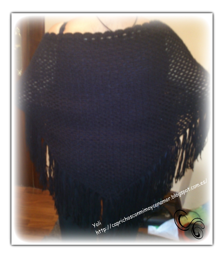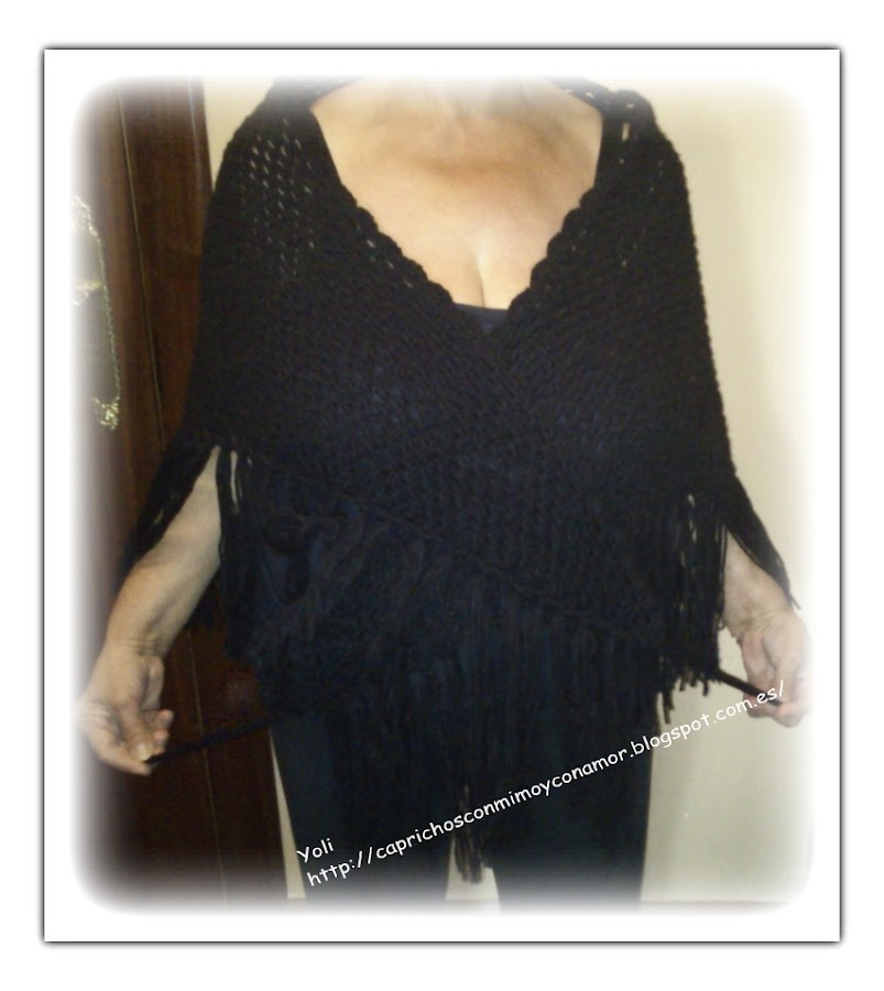Y todo esto que os he soltado es para enseñaros la toquilla que me he estado haciendo, junto con los mendigozales forma parte de la indumentaria de las chicas, estoy orgullosa de habérmela echo y terminado a tiempo jajaja porque el ganchillo no es mi fuerte, vamos que es lo primero que tejo, creo que no ha quedado mal vosotras diréis...........jajajajaja