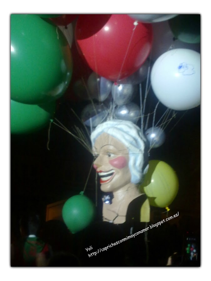 Y esta ultima foto os recomiendo que la tengáis en mente y os fijéis bien en ella jajajajajaja porque???? por que el ultimo día se suelta con globos , se la deja volar y quien la encuentre ademas de una pequeña recompensa económica por rescatarla y devolverla al pueblo, esta invitado a disfrutar de nuestras fiestas el año próximo así que estar muy atentos por vuestros dominios jajajajjajajajajja, ha habido años que ha volado muy muy lejos incluso fuera de España, también la gusta aparecer por Castilla...Cantabria, Asturias.....en fin donde los globos y el viento la lleve...........