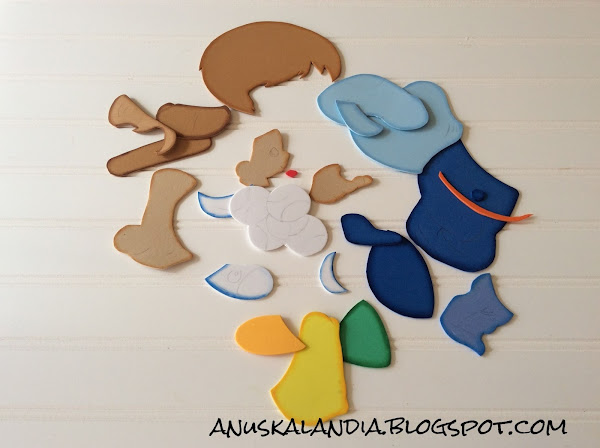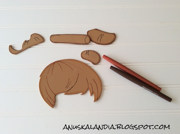 La mayoría de las piezas, llevan una serie de rayas, que en este caso, dibujan desde bolsillos, hasta dan más realismo a las piezas. Si quieres saber como se hace este paso, vimos como hacerlo en la perrita con regadera, primera parte.