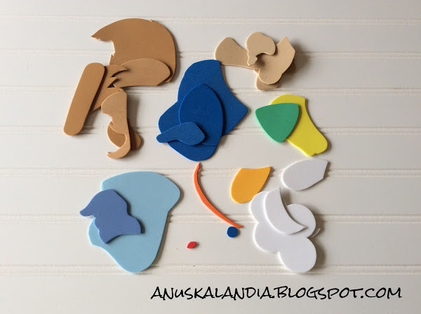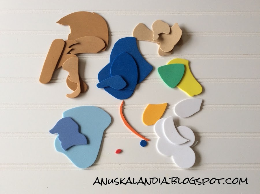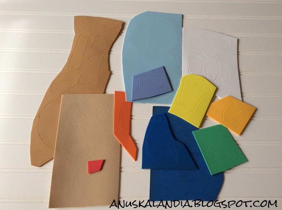 - Goma eva 2 mm.: Piel, marrón claro, azul marino, azulón, azul cielo, blanco, amarillo huevo, amarillo anaranjado, verde y naranja.