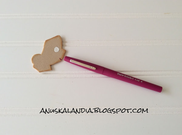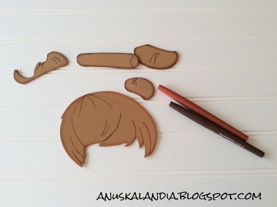 Con el palito de brocheta se marcan los moldes o patrones en la goma eva.