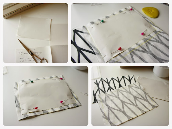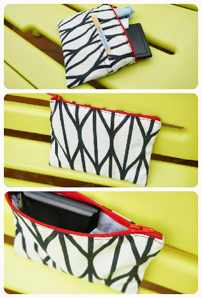 For this super-basic pouch use a A4 sheet quarter as a pattern, cut 2 pieces of fabric plus 2 pieces of lining, then using 2/3 parts of the former pattern cut another piece of fabric to make a side pocket.