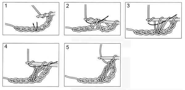 Este punto también se denomina vareta en otros países hispanohablantes, double crochet o treble en inglés, y bride simple en francés.