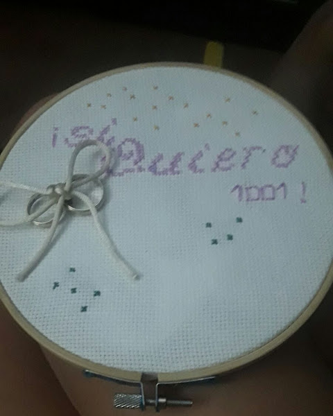 Realmente es muy sencillo y económico los ovillos ya los tenia porque antes hacia muchisimo punto de cruz y el bastidor lo compre en un bazar por 2 .