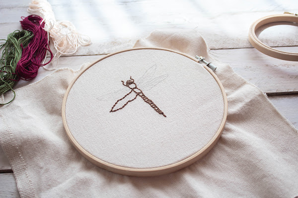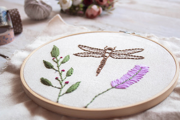 Al principio mi idea era hacer sólo una libélula, pero las ansias me pudieron (además que el bastidor quedaba muy soso así) y acabé haciendo plantas para rellenar más el espacio