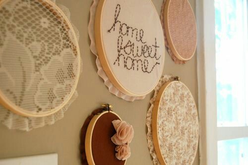 La verdad es que los bastidores como motivo decorativo se estan poniendo muy de moda , en lugar de un cuadro en la pared una cosita así queda de lujo y original